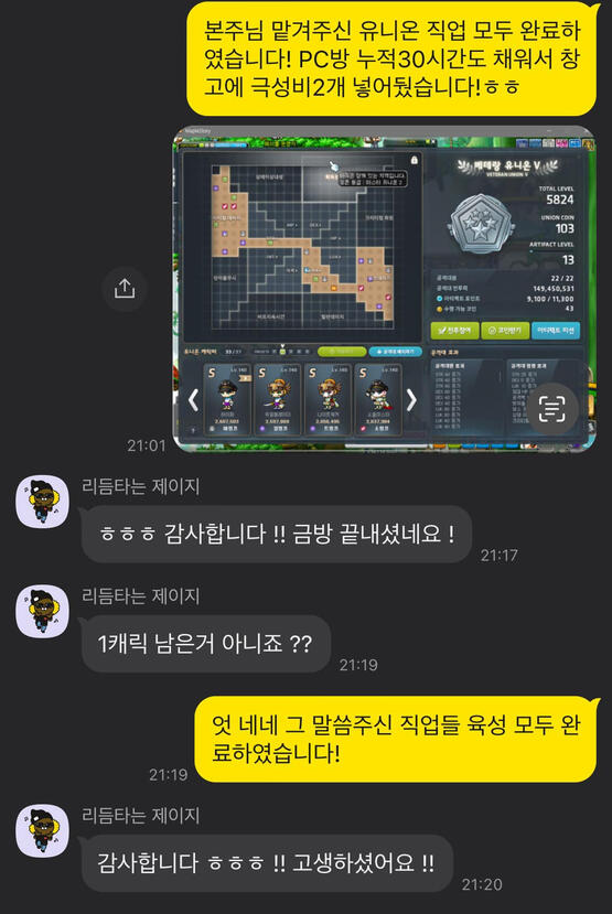 1 - 200 레벨 구간 사이 유니온 육성 진행합니다.